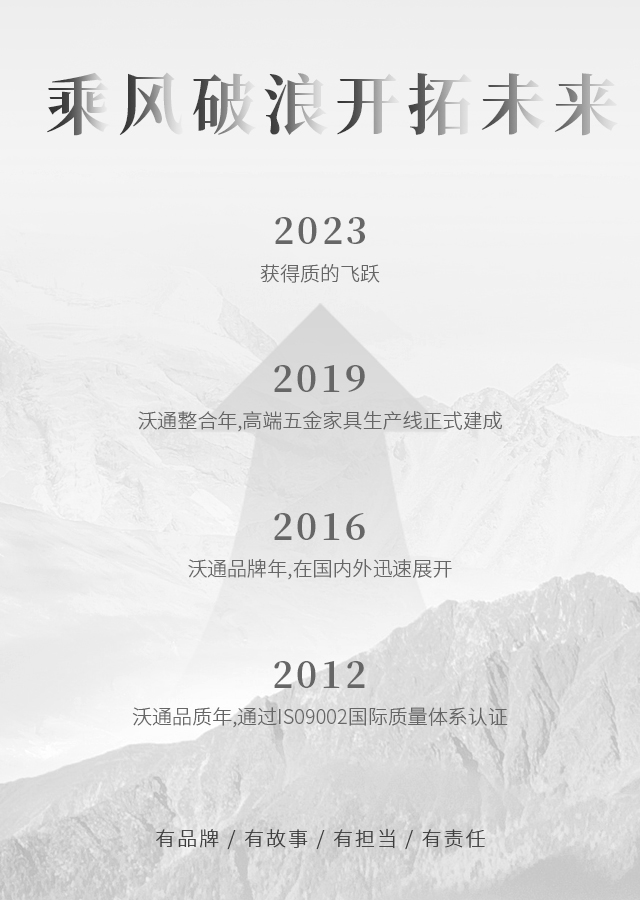 沃通五金將積極弘揚(yáng)中國(guó)家具文化,綜合國(guó)際家具潮流,運(yùn)用無(wú)限的創(chuàng)意,設(shè)計(jì)生產(chǎn)出大量造型美觀,引領(lǐng)時(shí)代潮流的新產(chǎn)品。